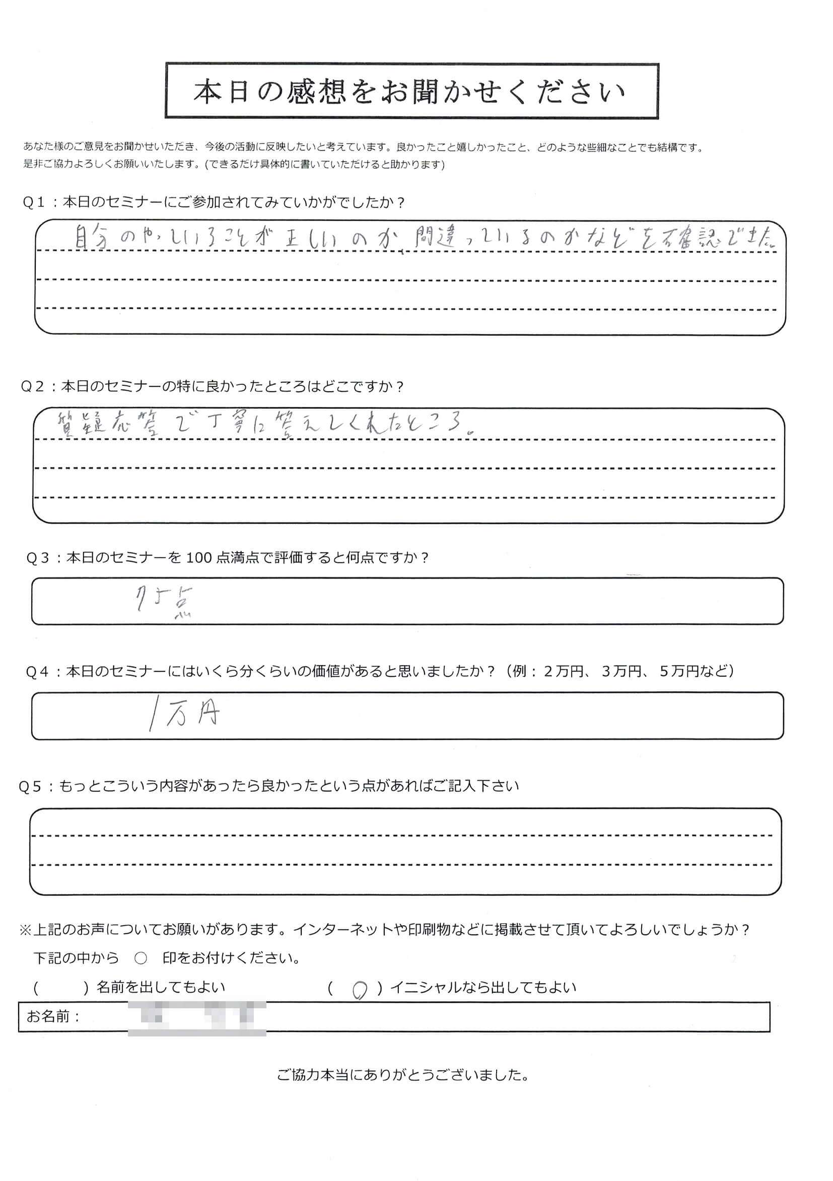石川さんのWebセミナーはいつもわかりやすいのですが、やはりリアルセミナーに出ますと、より深く感じ取ることができました。実際にKWを探す場所、拾い方も教えていただいて、KWの概念だけでなく、実践的なことも教えていただいたので具体的に取り組みやすいです。